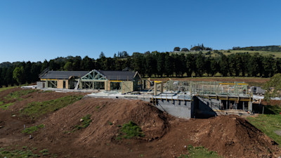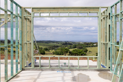 Main dwelling framing begins, with the timber structure starting to reveal those stunning countryside views.