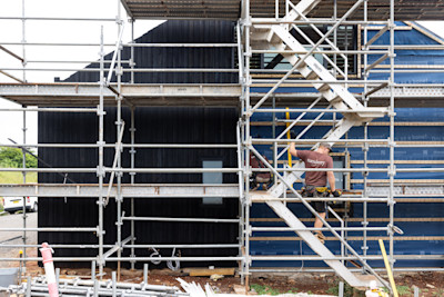 Both dwellings will feature this cladding, tying the buildings together visually while giving them that modern yet timeless aesthetic we've been after. Watching it transform the secondary dwelling has been incredible - can't wait to see both homes fully clad!