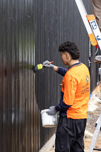 The shou sugi ban installation has officially started on the secondary dwelling, and we're loving how it's looking!