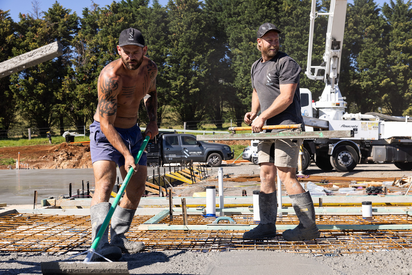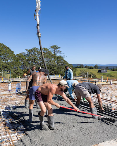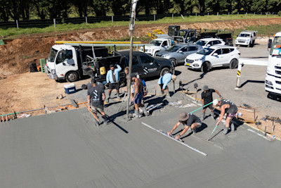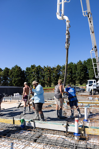 We couldn't have asked for better conditions on pour day – clear skies, and a crew that knows exactly what they're doing.