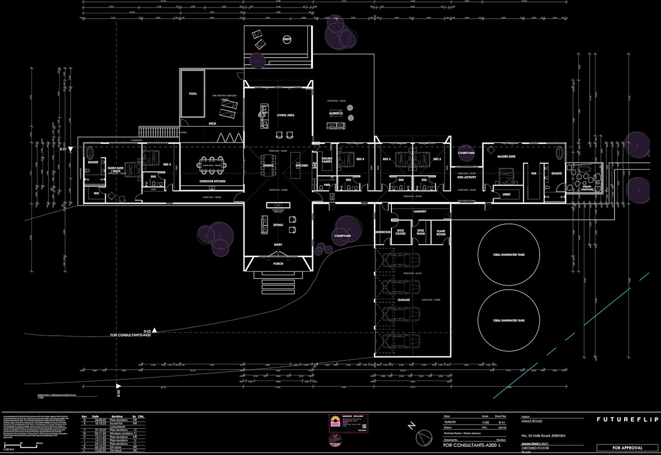 Our plans include a new 6 bedroom main dwelling with ensuites in each bedroom, a 4 car garage, large office space and massive open plan kitchen / living area with views north towards Wollongong.