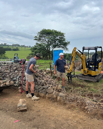 This week brought visible changes to the property as our stone mason carefully dismantled sections of the heritage wall to accommodate the new entry way. Being mindful of the wall's historic value, we've saved the stone for future use elsewhere in the project.