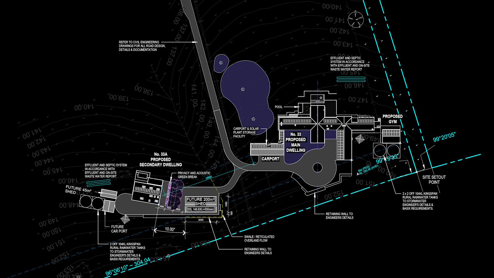 We also had a surveyor mark out the buildings and discovered that the secondary dwelling was not located in an ideal location. The primary dwelling was also rotated in a way that meant it would end up needing a large retaining wall that would increase costs and be a bit of an eye-sore.