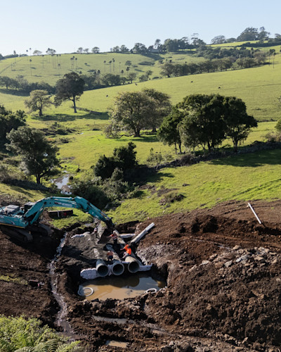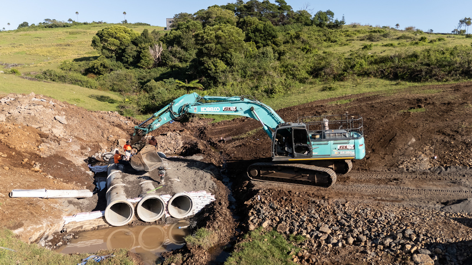 The drainage pipes have now been installed, creating proper water management for the roadway.