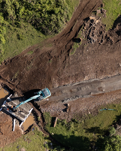 We took delivery of the road base material for the foundation layer. We hope to have access across the creek in the next few weeks.