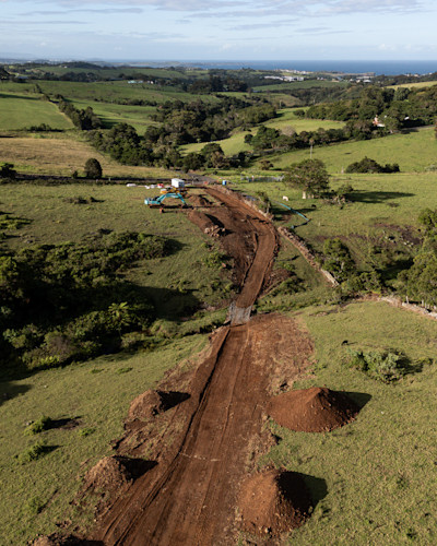 This step brings us closer to laying the foundation for what’s to come, and we’re excited to see the shape of the project really start to emerge. But just when we thought we were cruising along, Mother Nature threw us a curveball: we’ve hit rock. And not just a little bit of rock—a solid layer that’s put a temporary pause on our progress. It’s all part of working with the land down here on the South Coast, where the terrain keeps us on our toes.
