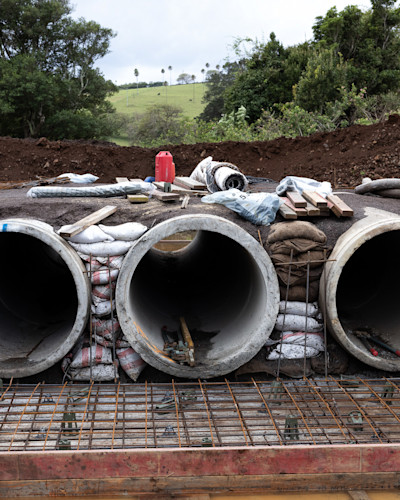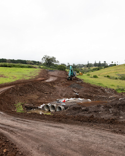 The bridge footings have been poured and we are waiting for the form work to be completed so that they can pour the rest of the bridge.